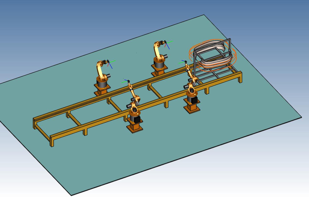 这个例子,只是简单模拟一下如何用离线编程软件制作钣金折弯的轨迹。因为实际中,折弯机的高度有限,折弯的板材可能长宽比又大。因此, 1.机器人选型时,二轴的臂长尽量要短 ;三轴臂长尽量要长; 2. 钣金吸盘工具需要特制,保证抓住板材后,尽量向机器人一侧偏离,从而避免板材和三、四轴干涉; 3. 实际折弯过程中,机器人可以从下往上抬举运动,也可从下往上拽起运动。; 4.为提高工作效率,整个过程中机器人始终抓取着板材 。 本例只是演示,不太符合上述几个条件,仅仅验证能力。