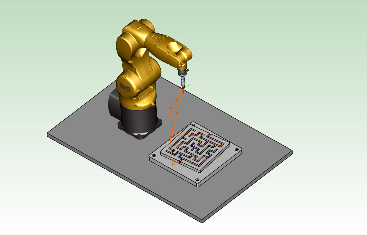 工业机器人走迷宫:该场景主要有一款普通六轴机器人和一个自定义机构、和一个含有迷宫一样的复杂零部件组成。该场景主要用来验证机器人和外部机构协同运动、同步工作的能力。比较炫酷新颖! 适合于涂胶、打磨、焊接、切割、铣槽等领域。